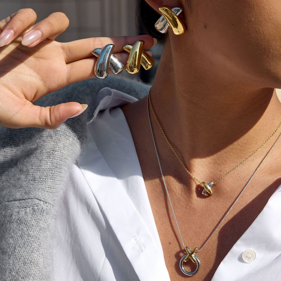 💛🤍 18K Gold × S925 Silver Color Blocking · A Blend of Warm and Cool Tones