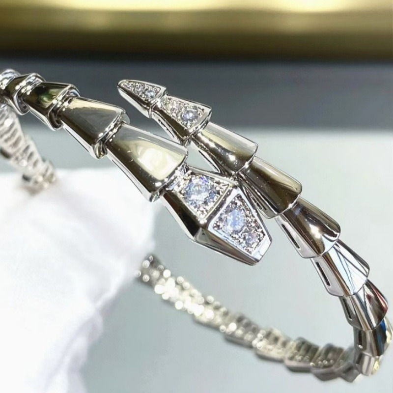 This bracelet features a serpent as its core design element, cleverly combining the three-dimensional structure of a serpent's skeleton with sparkling cubic zirconia. The 18K gold finish creates a dynamic, sophisticated, and elegant visual effect. Wearing it on your wrist exudes confidence and refined radiance.
