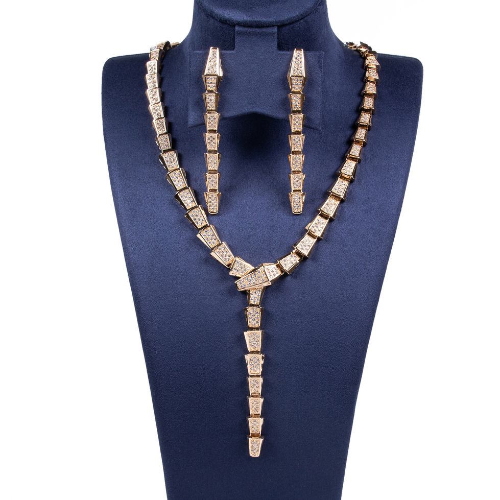 Inspired by the graceful movement of the serpent, this set combines exquisite 18K gold craftsmanship with fluid lines to create a "light luxury" aesthetic—mysterious, elegant, and undeniably sophisticated. The necklace and earrings complement one another perfectly, revealing a unique charm and commanding presence through their intricate details.