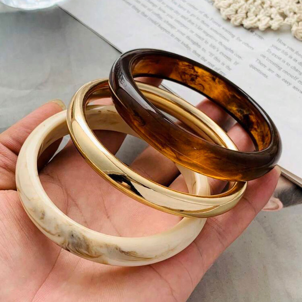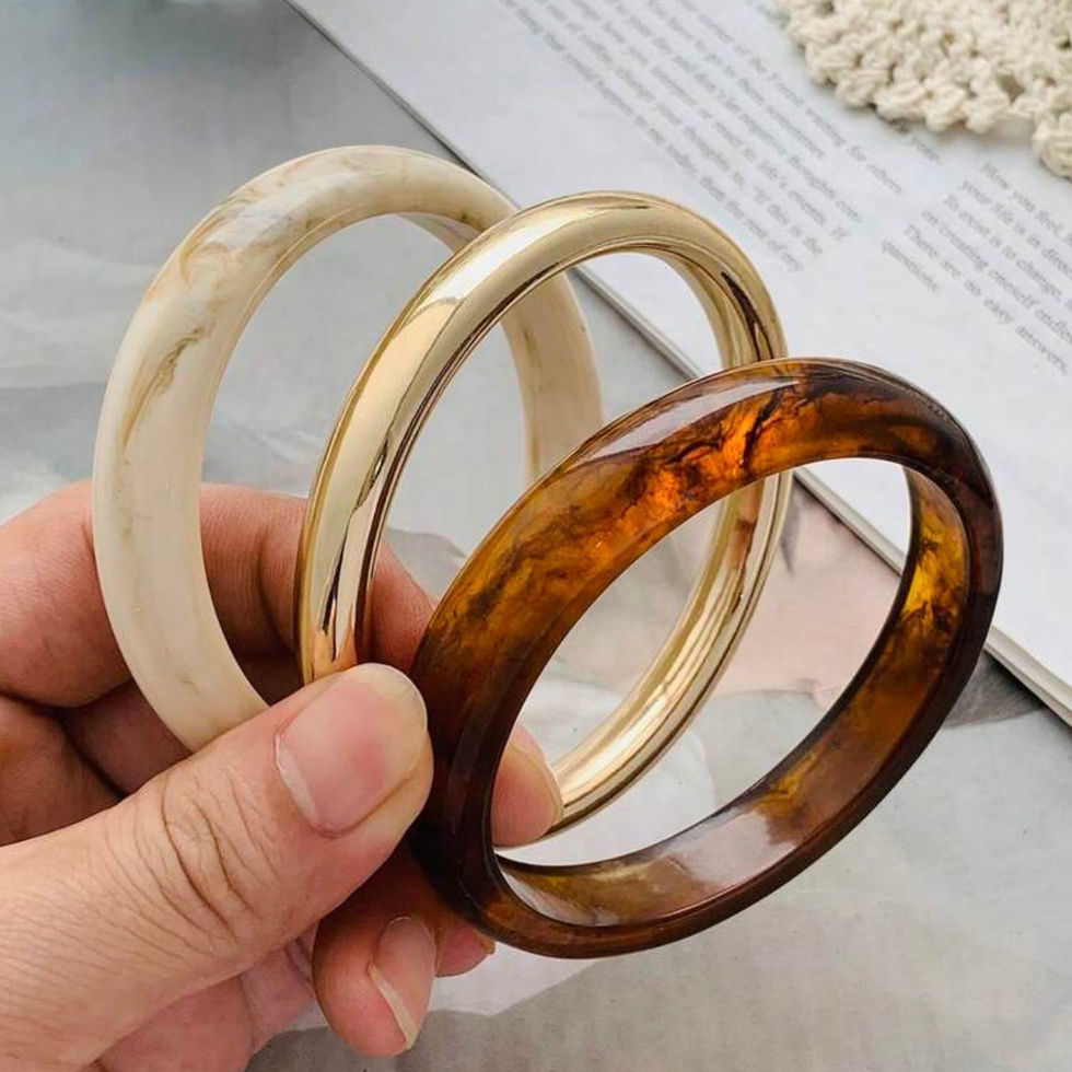 The translucent and layered texture makes each bangle unique, exuding a warm vintage feel.