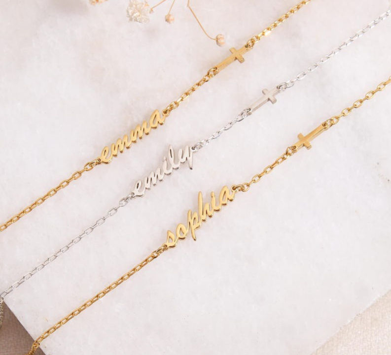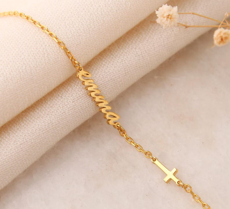 This bracelet is based on a minimalist and exquisite chain design, subtly blending personalized name customization and a cross charm element to showcase a distinctive fashion charm. You can freely customize the name, giving the bracelet a one-of-a-kind personality, making it your exclusive symbol or a special gift.